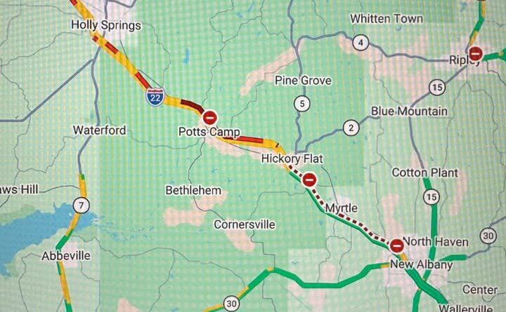 The westbound lanes of I-22 were closed at the Glenfield exit, causing disruptions for travelers. Drivers exiting at Myrtle were detoured back onto eastbound I-22.