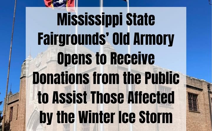 Mississippi Agriculture Commissioner Andy Gipson announced the Old National Guard Armory on the Mississippi State Fairgrounds will serve as a donation drop-off site to assist residents impacted by recent winter ice storms.