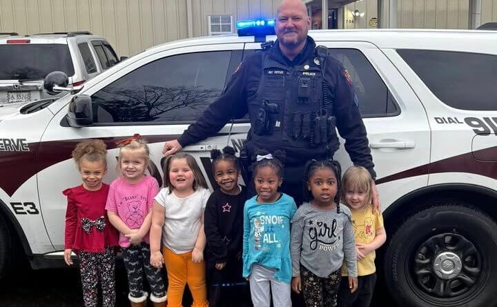 The New Albany Police Department visited Rainbow Learning Center to spend time with children, answering questions and displaying police cars, the center said.